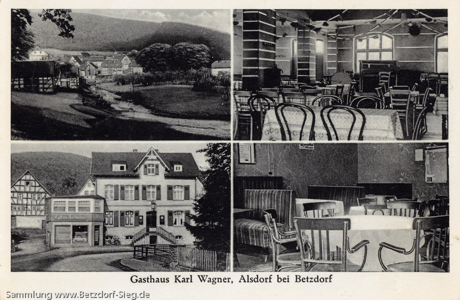 Alsdorf - Gasthaus Karl Wagner - um 1939 Moderne Fremdenzimmer und Pension. Sonntags Konzert und Tanz. Schöne Sommerfrische. 1a Speisen und Getränke