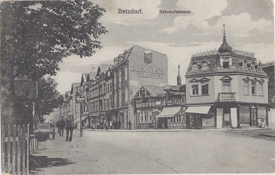 Bahnhofstraße 1918 Langsam fahren! mahnt das Schild links im Bild - Fahrzeuge sind allerdings noch keine zu sehen.