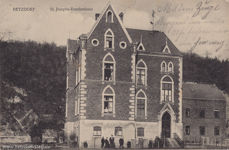 Betzdorf- St. Josephs-Krankenhaus um 1913 Krankenhaus in der Helelrstraße; Einweihung 1899; Verlag R. Wingendorf, Betzdorf; Heute steht dort die Stadthalle Betzdorf