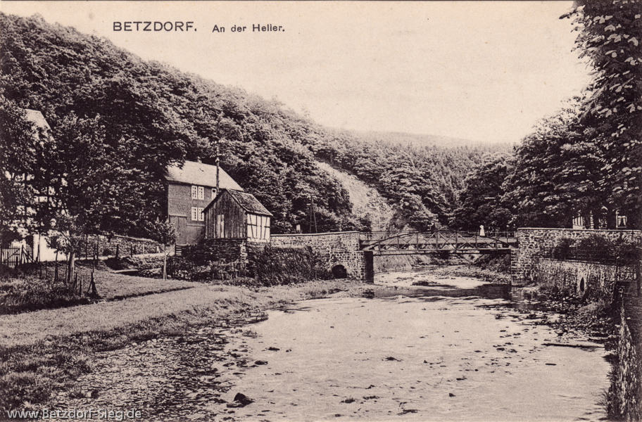Betzdorf - Heller und Hellerbrücke um 1910 Links an der Brücke das alte Zollhäusschen. Verlag Otto Ebener's Buchhandlung Betzdorf